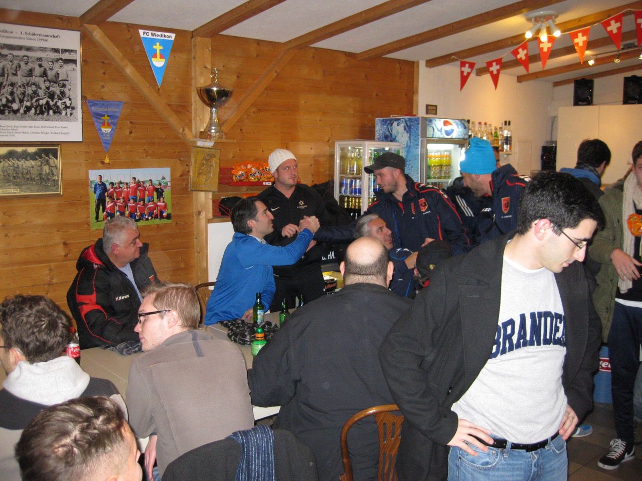Nach dem Spiel ging es dann ins Klubhaus des FC Wiedikon, der so grosszügig war und den Teams seine Anlage zur Verfügung stellte. Nach anfänglichem Zögern entwickelten sich interessante Gespräche zwischen den zwei Mannschaften. Vor allem die Trainer und Spieler des FC Albania hatten viele Fragen über Juden und Judentum, so stand bei den Gästen auch das Kernthema der Ausstellung Besa im Fokus ihres Interesses. Politische Themen wurden keine diskutiert, was aber auch niemand vermisste. Es ging nicht um den mittleren Osten, es ging um das Hier und das Jetzt. Zwei „Aussenseiter“ in der Schweiz trafen sich zum freundlichen „Hallo“. Sogar der Wirt des FC Wiedikons zeigte sich begeistert!